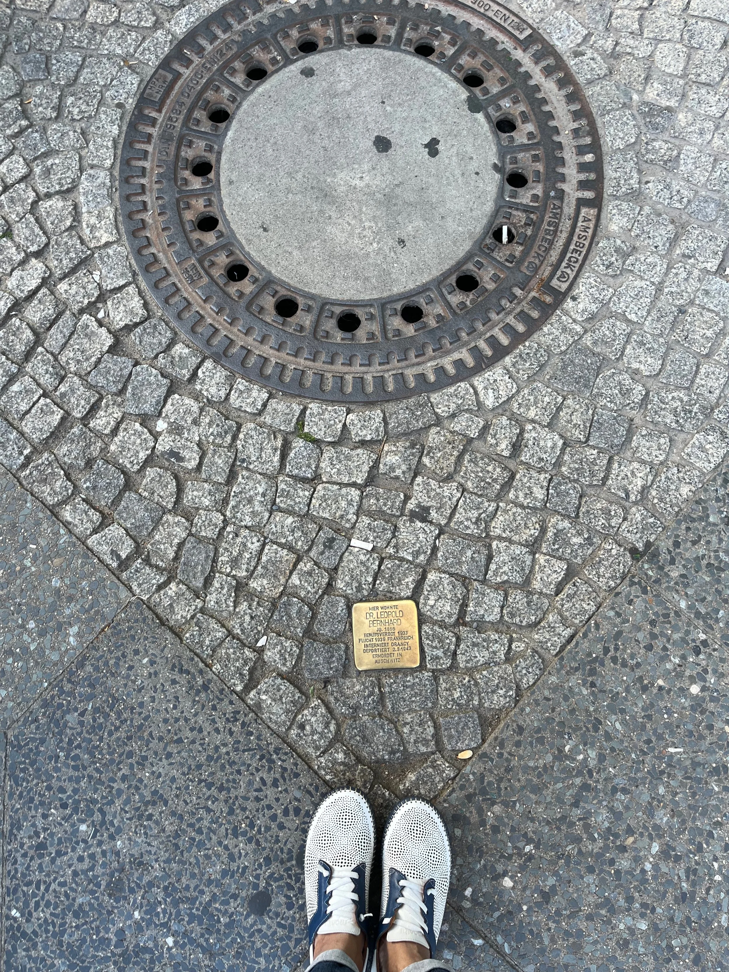Stumbling across my first stolperstein outisde the Weinmeisterstasse subway station, Mitte, Berlin, August 2025.