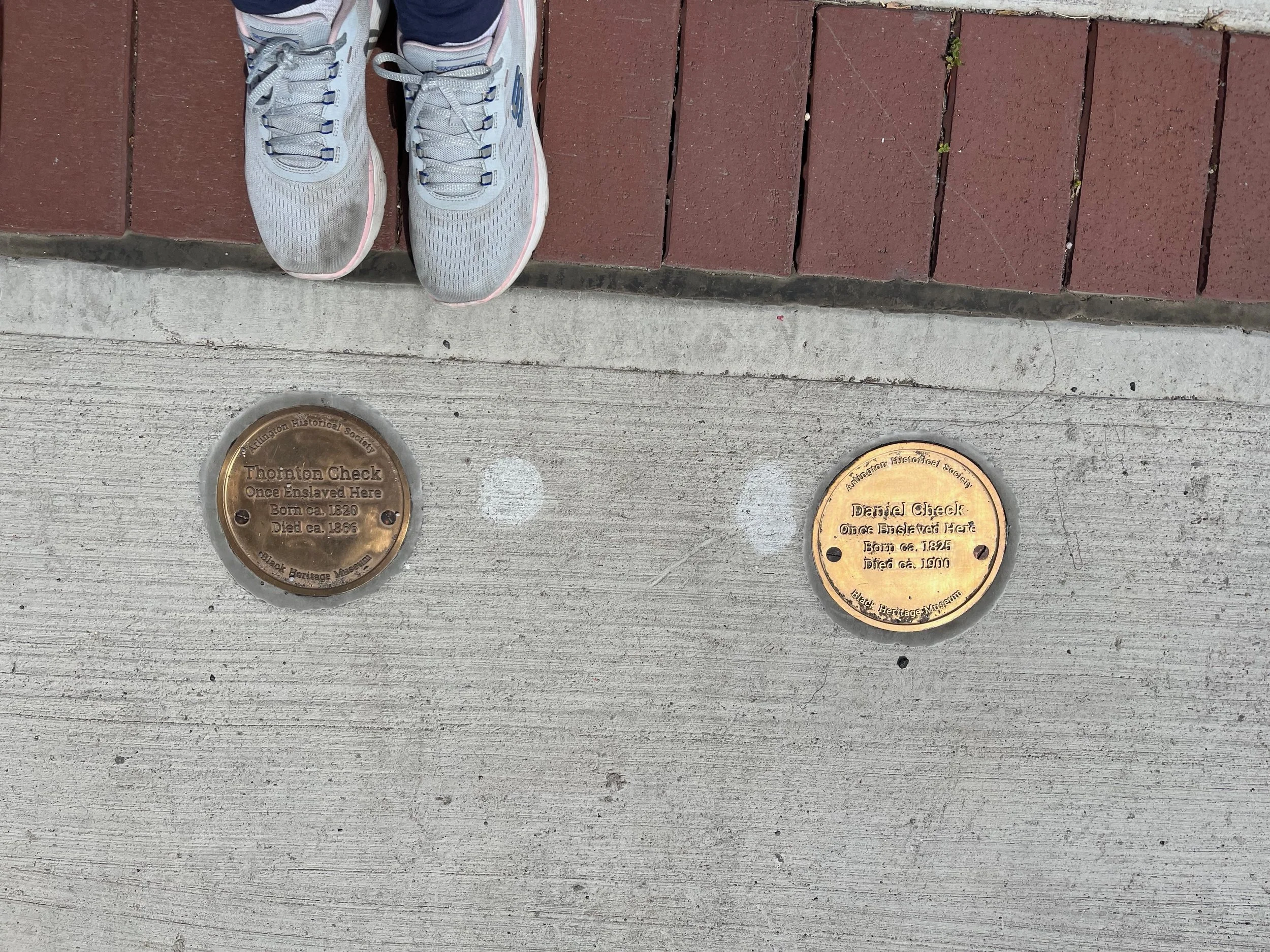 On Saturday June 7th, 2025, I bumped into Ashley as we both walked to the spot where the MEA event was going to take place. It was the first time either of us was attending one of their dedication events. That afternoon they put down two Stumbling Stones near the Sheraton hotel on Columbia Pike, which honored brothers Thorton and Daniel Check.